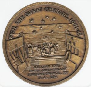 1995年発行の「日本降伏受諾50周年記念メダル」は、米国フリーメイソン南部管区(スコティッシュ・ライト33階級)の最高評議会が発行したものです。