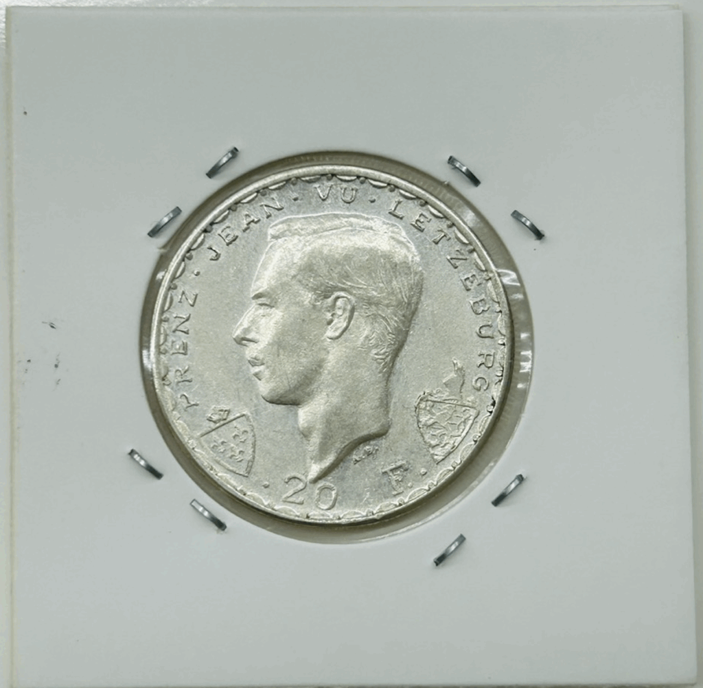 この20フラン銀貨は大公ジャンがまだ「皇太子(プリンス)」時代のデザイン。