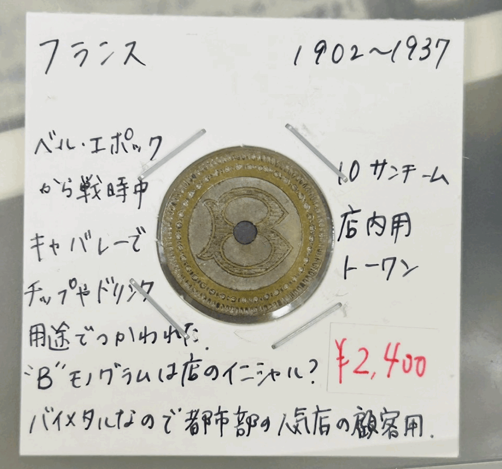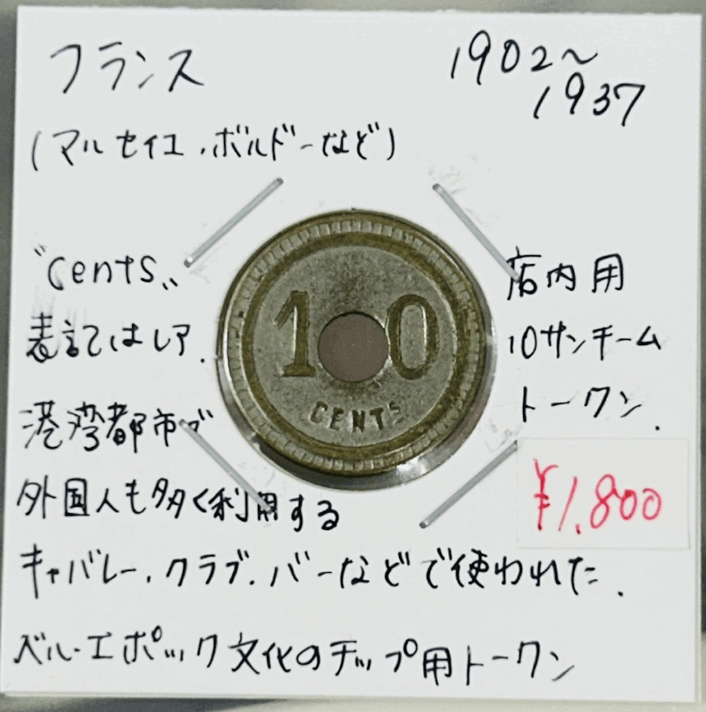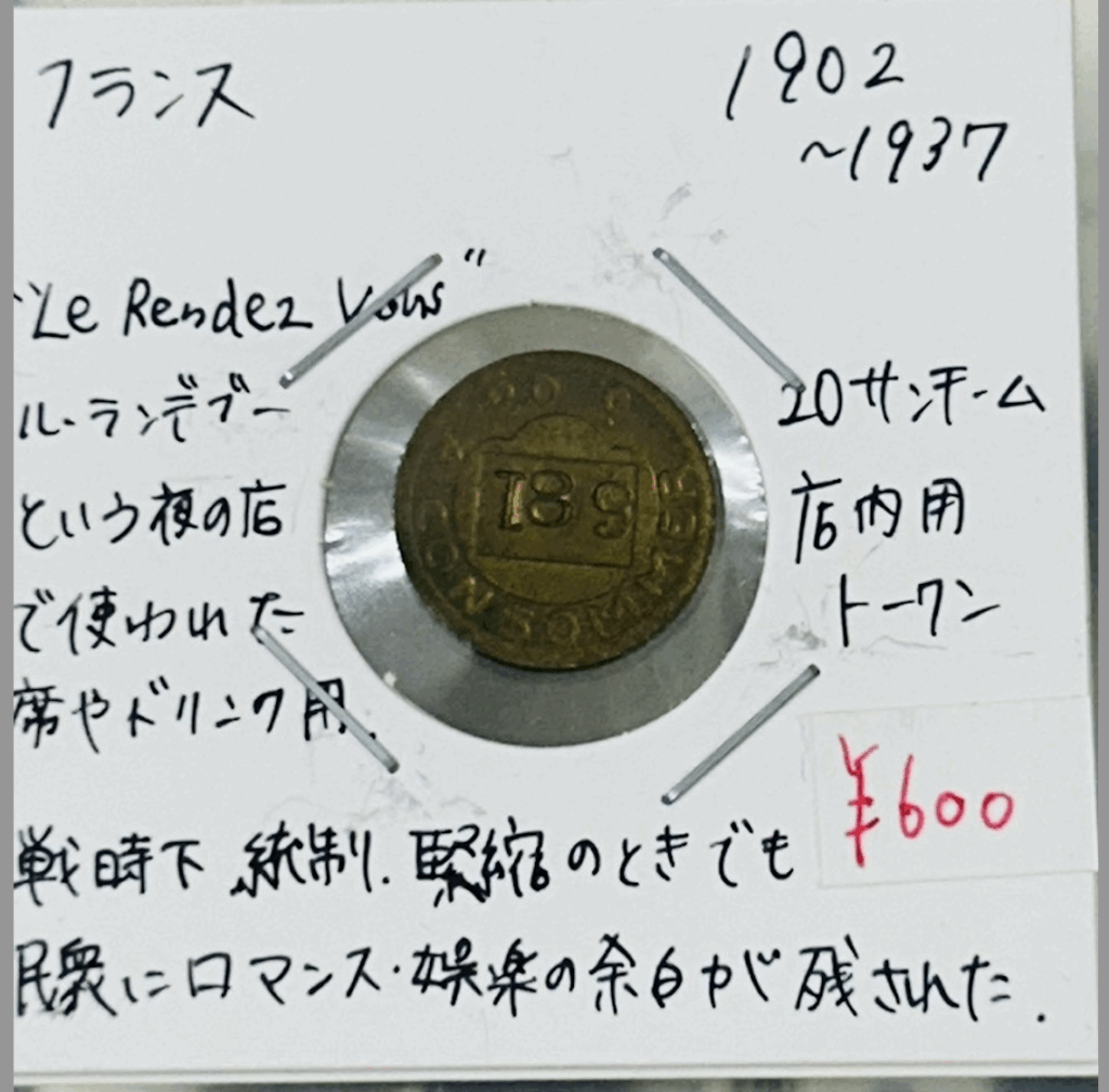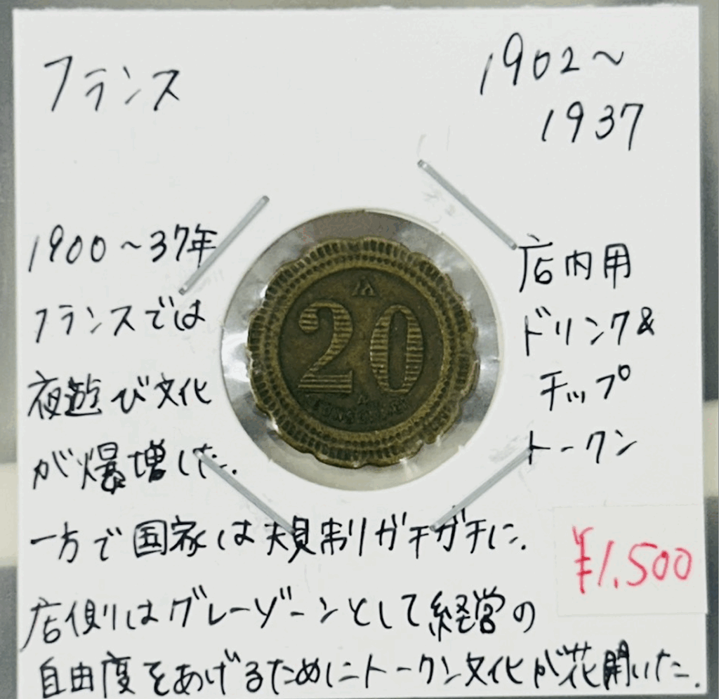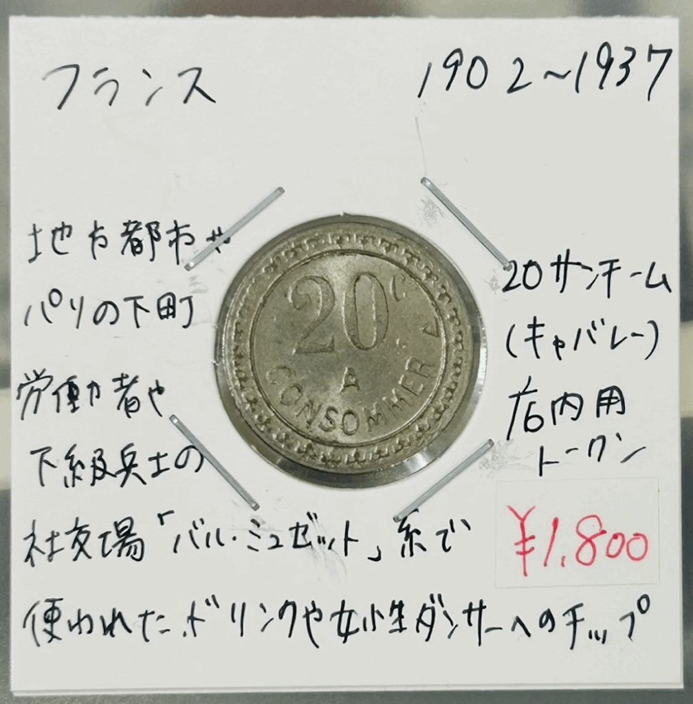 - フランス 20サンチーム店内トークン(D.D. 型/キャバレー・バー用途)