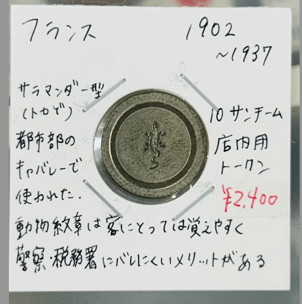 - フランス・サラマンダー図柄 10サンチーム店内トークン