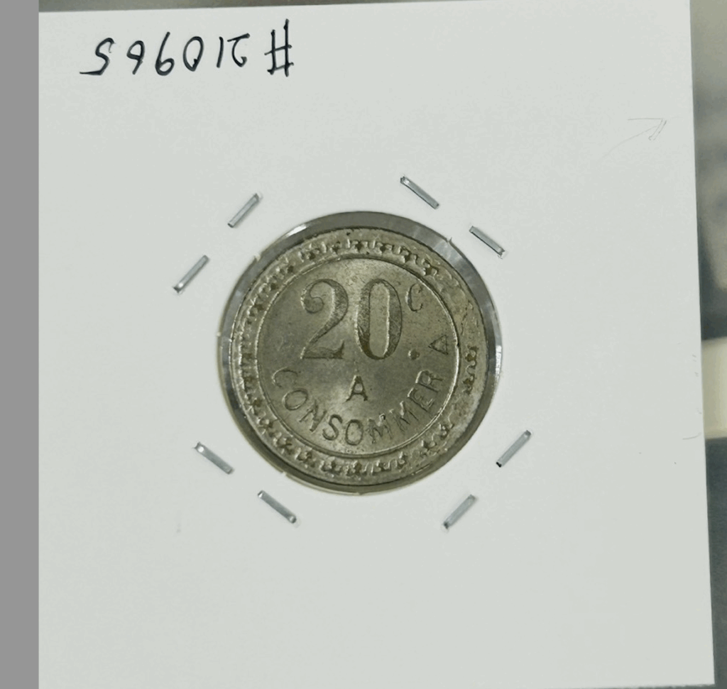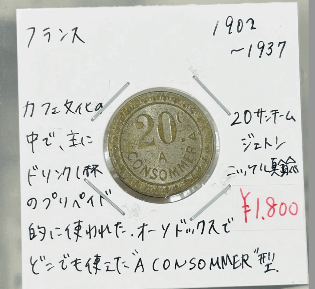 - フランス 20サンチーム・バル=ミュゼット店内用トークン(A CONSOMMER)