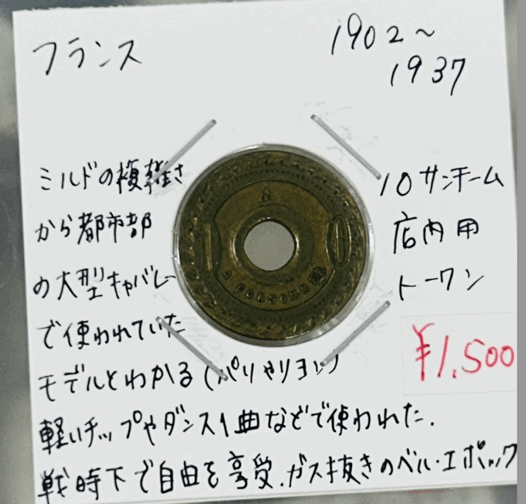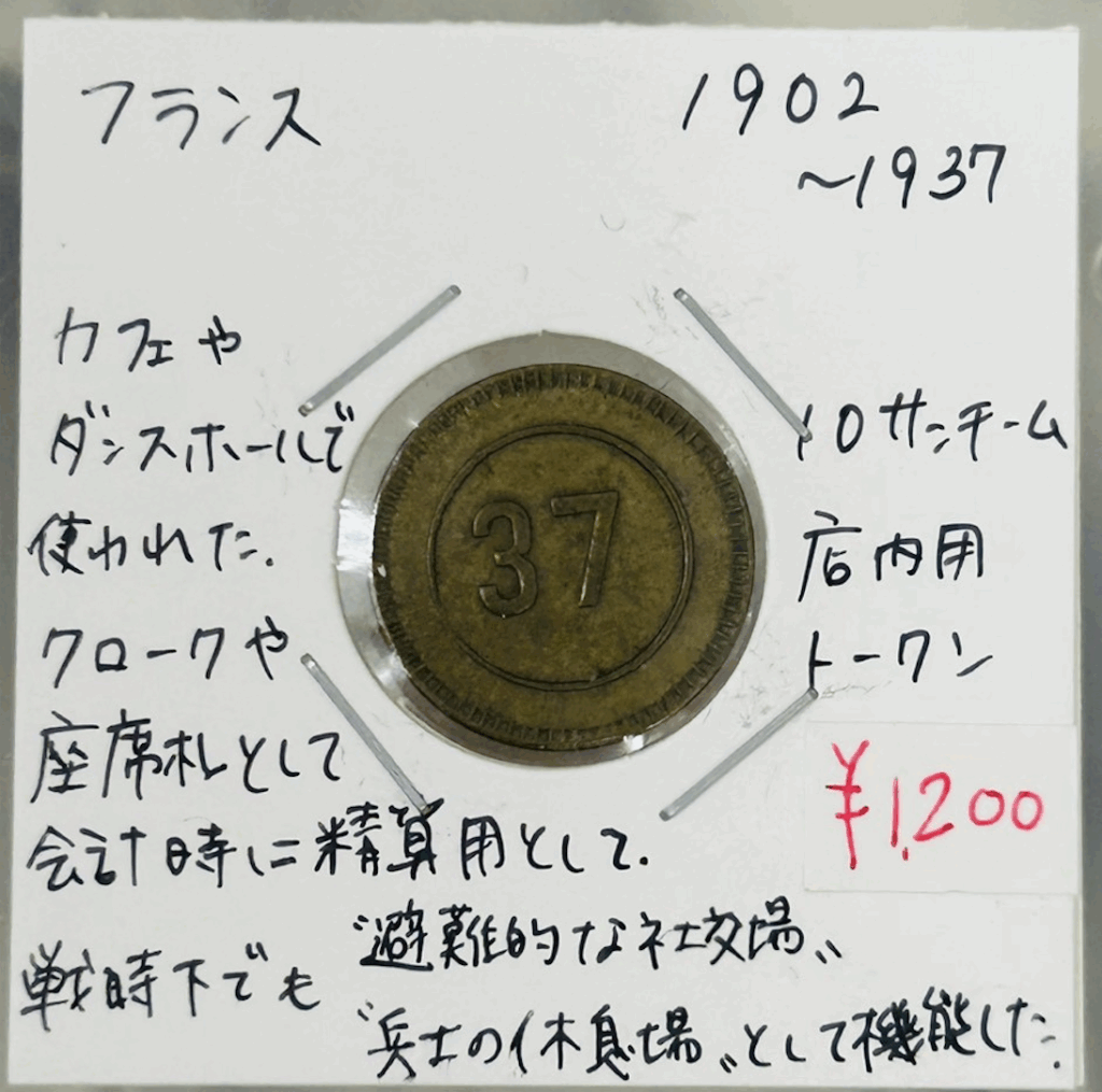 - フランス 10サンチーム店内トークン(番号札“37”型)