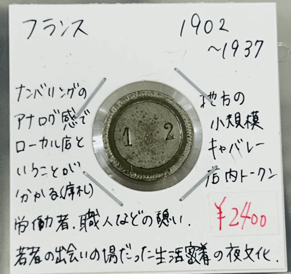 - フランス 50サンチーム店内トークン(ナンバリング“1・2”型)