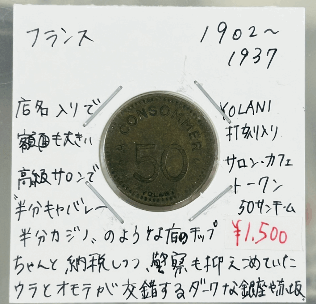 - フランス YOLANI 店名刻印入り 50サンチーム・サロン/キャバレートークン