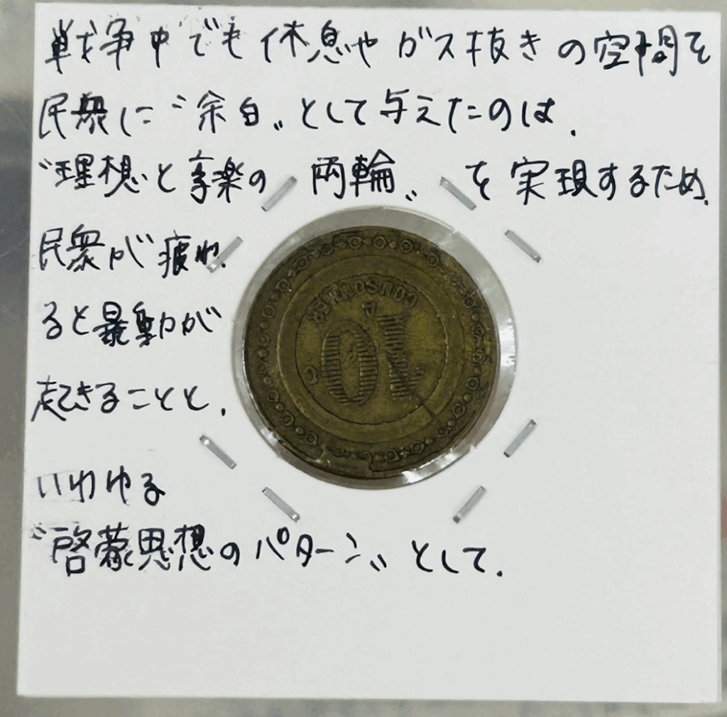 戦争中でも休息やガス抜きの空間を民衆に“余白”として与えたのは、“理想と享楽の両輪”を実現するため。