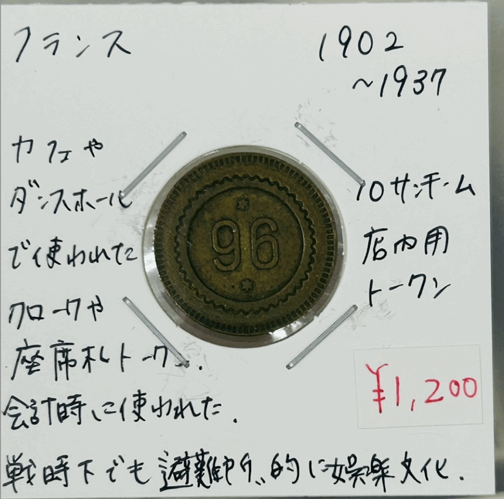 - フランス・ローカル店内用 10サンチーム・チップトークン(No.96)