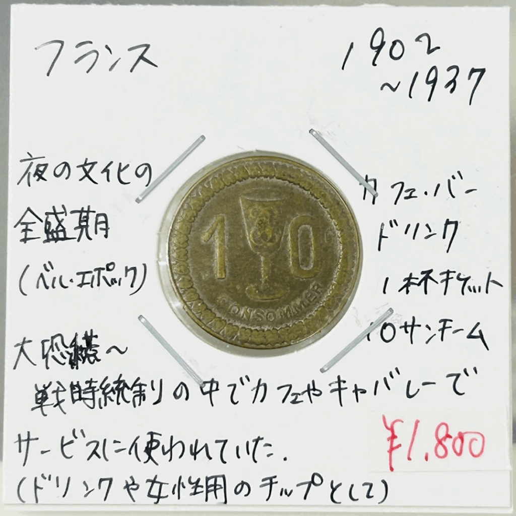 - フランス・穴あき10サンチーム店内トークン(A CONSOMMER)