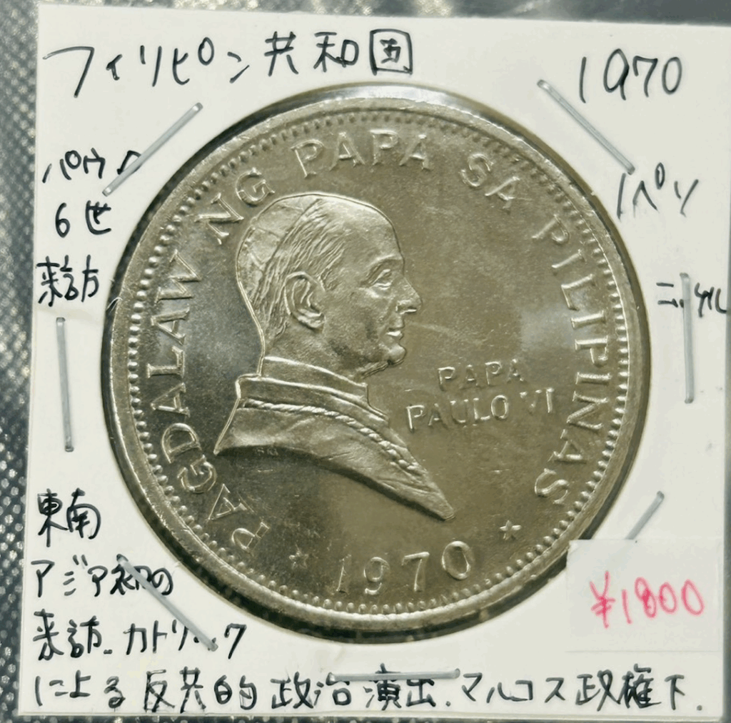 1970年 フィリピン パウロ6世来訪 1ペソ 銀貨