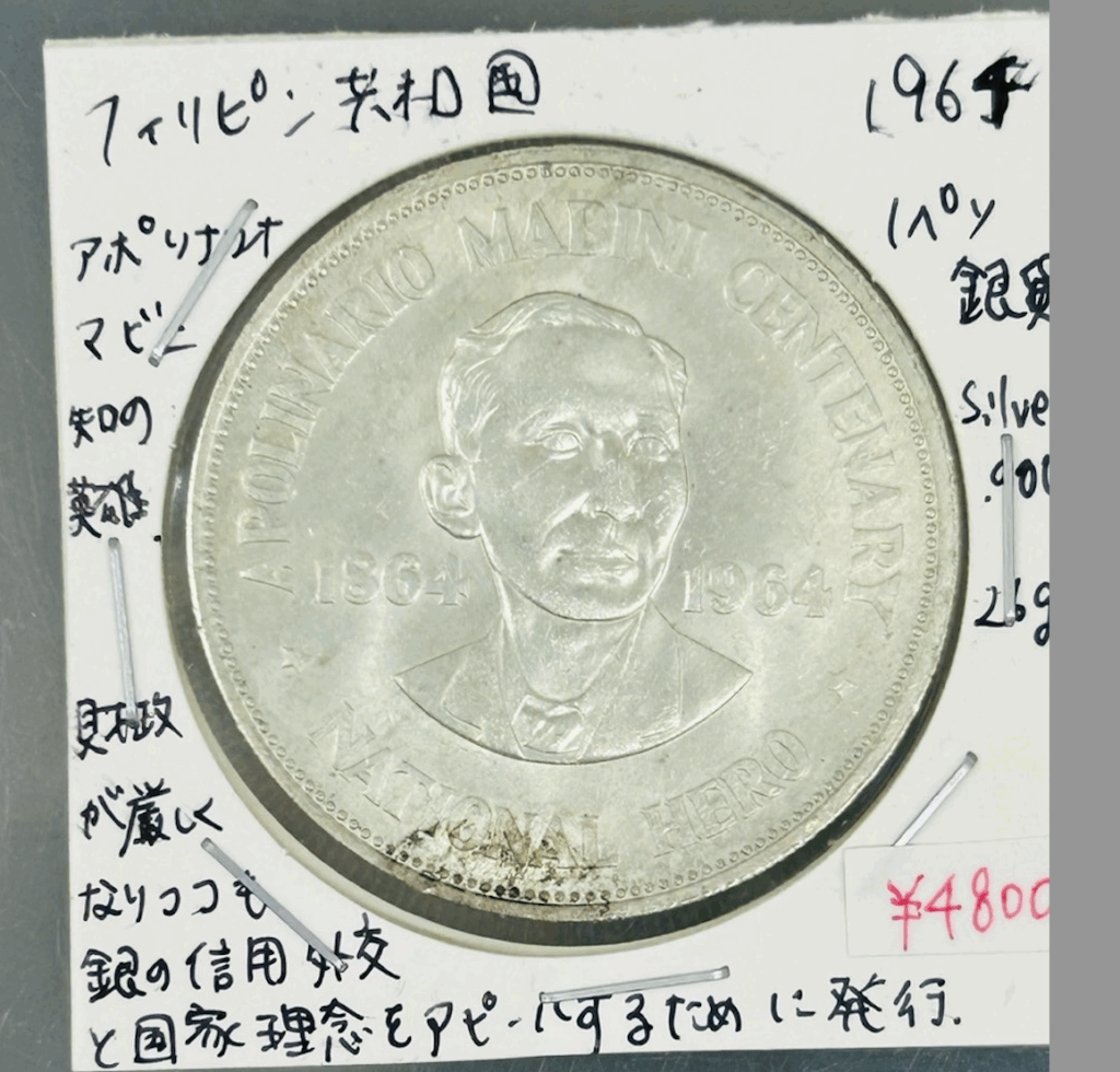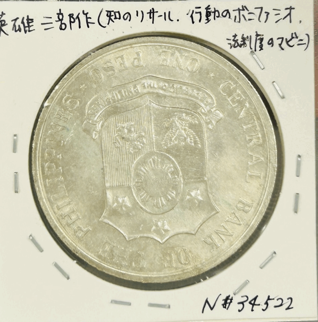 この2年後、1972年にマルコスは戒厳令を敷いて独裁化。1970年のこの銀貨はその“前兆の空気”を帯びてる。
